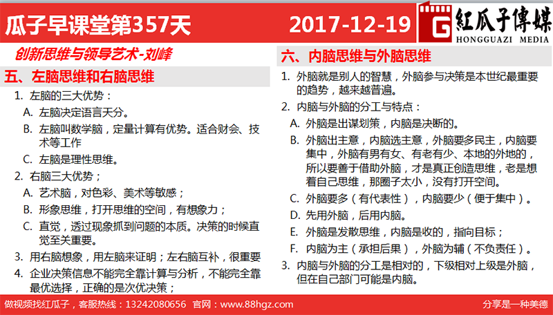 3、內(nèi)腦與外腦的分工是相對(duì)的,下級(jí)相對(duì)上級(jí)是外腦,但在自己部門可能是內(nèi)腦。