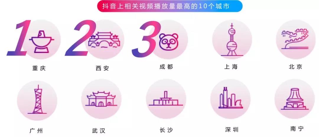 經(jīng)歷幾年時(shí)間的飛速發(fā)展后,短視頻APP抖音目前是各地打造城市名片的一個(gè)重要渠道。政務(wù)號(hào)、當(dāng)?shù)孛襟w入駐后發(fā)布的權(quán)威內(nèi)容,以及城市居民、游客自發(fā)分享的各類短視頻,共同構(gòu)建出一個(gè)與當(dāng)?shù)爻鞘邢嚓P(guān)的多元內(nèi)容池。而在全國(guó)所有城市中,成都的相關(guān)視頻播放量高居第三,說明在巨量引擎生態(tài)中,成都有著巨大的營(yíng)銷潛力。